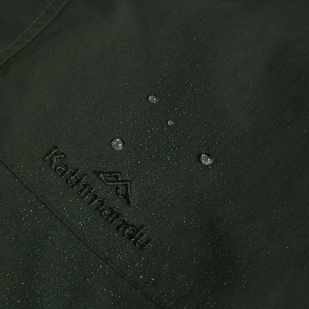 - Durable Water Repellent (DWR) finish — which encourages water to bead off the fabric’s surface